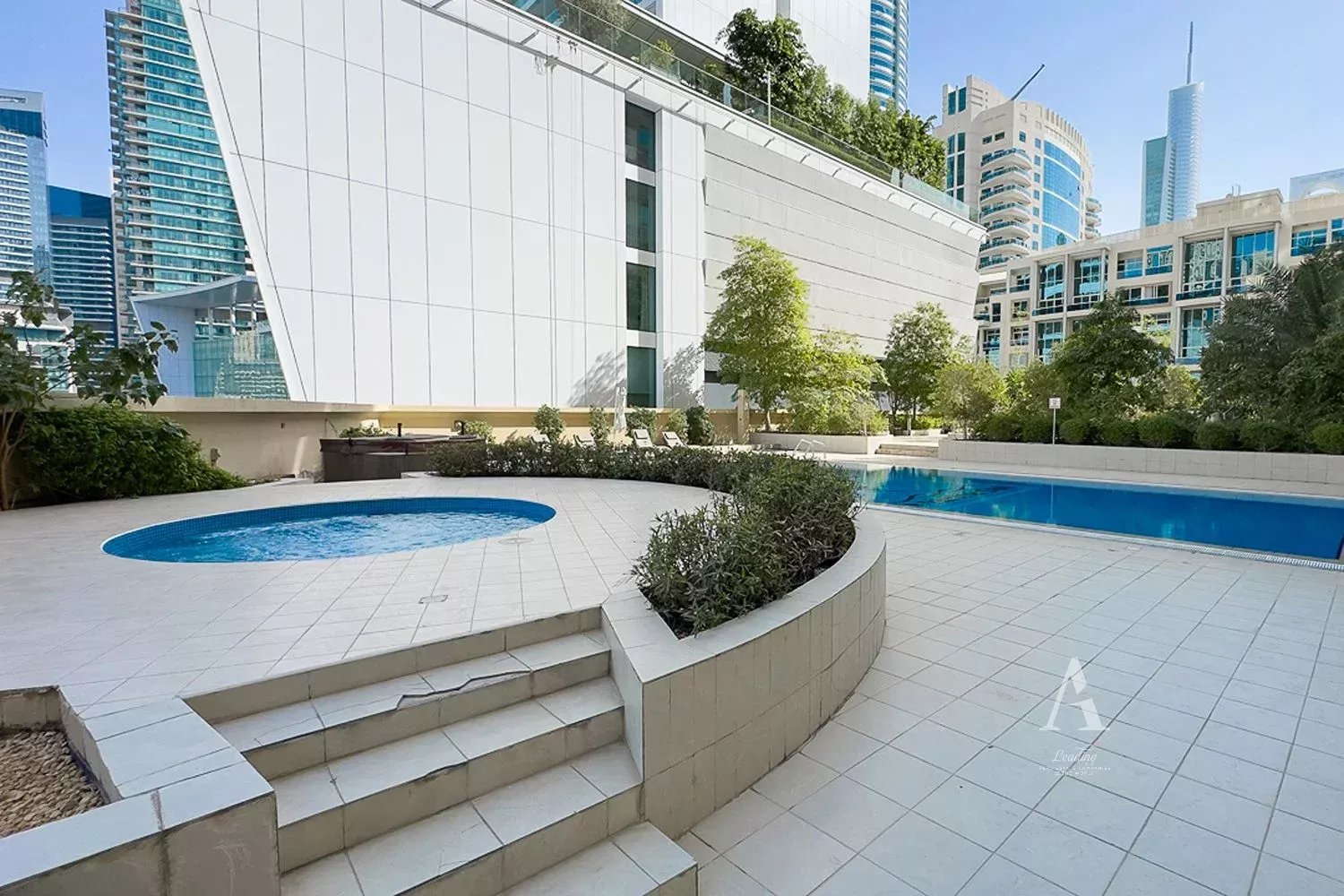 Residents have access to modern amenities, including a swimming pool, fitness center, sauna and concierge services, with access to a private garden area beside the swimming pool.
