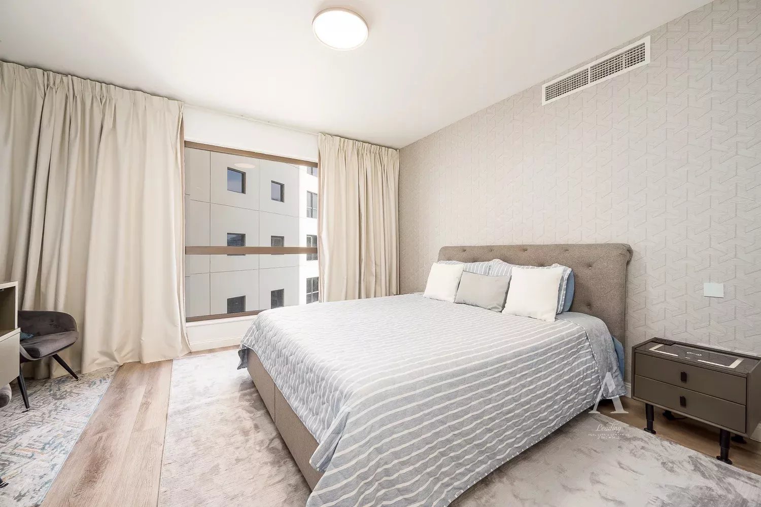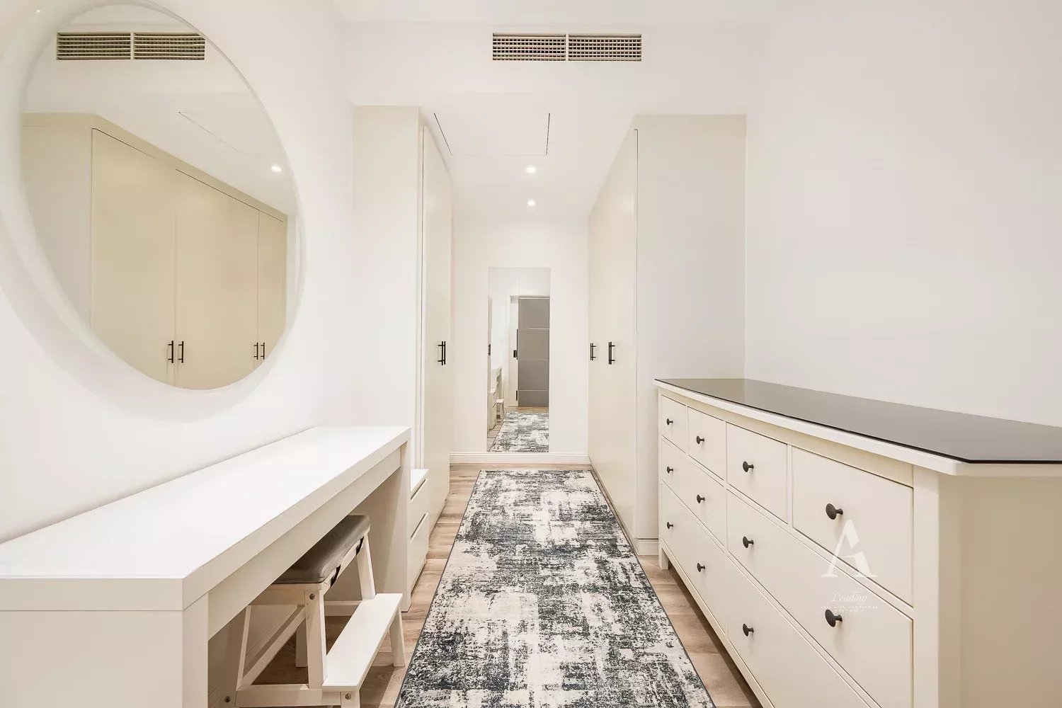 The apartment offers large bedrooms and bathrooms with built-in wardrobes in all the bedrooms. Very functional floor plan with the maid's room down the end of the hallway from the living quarters.