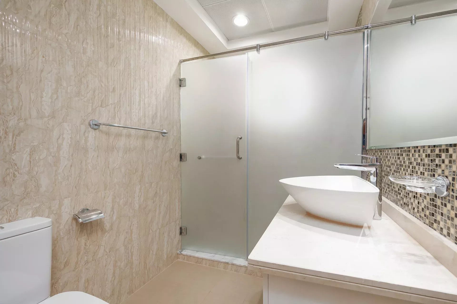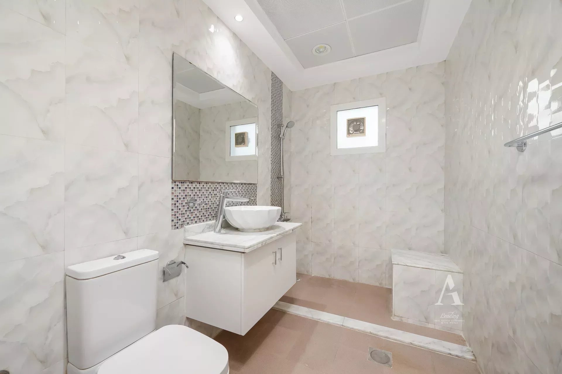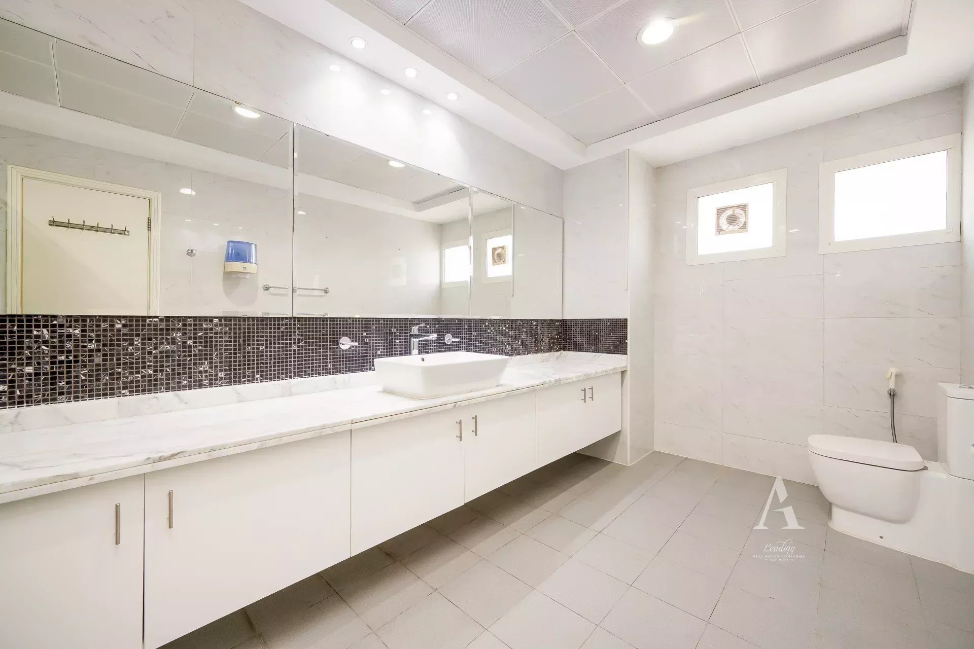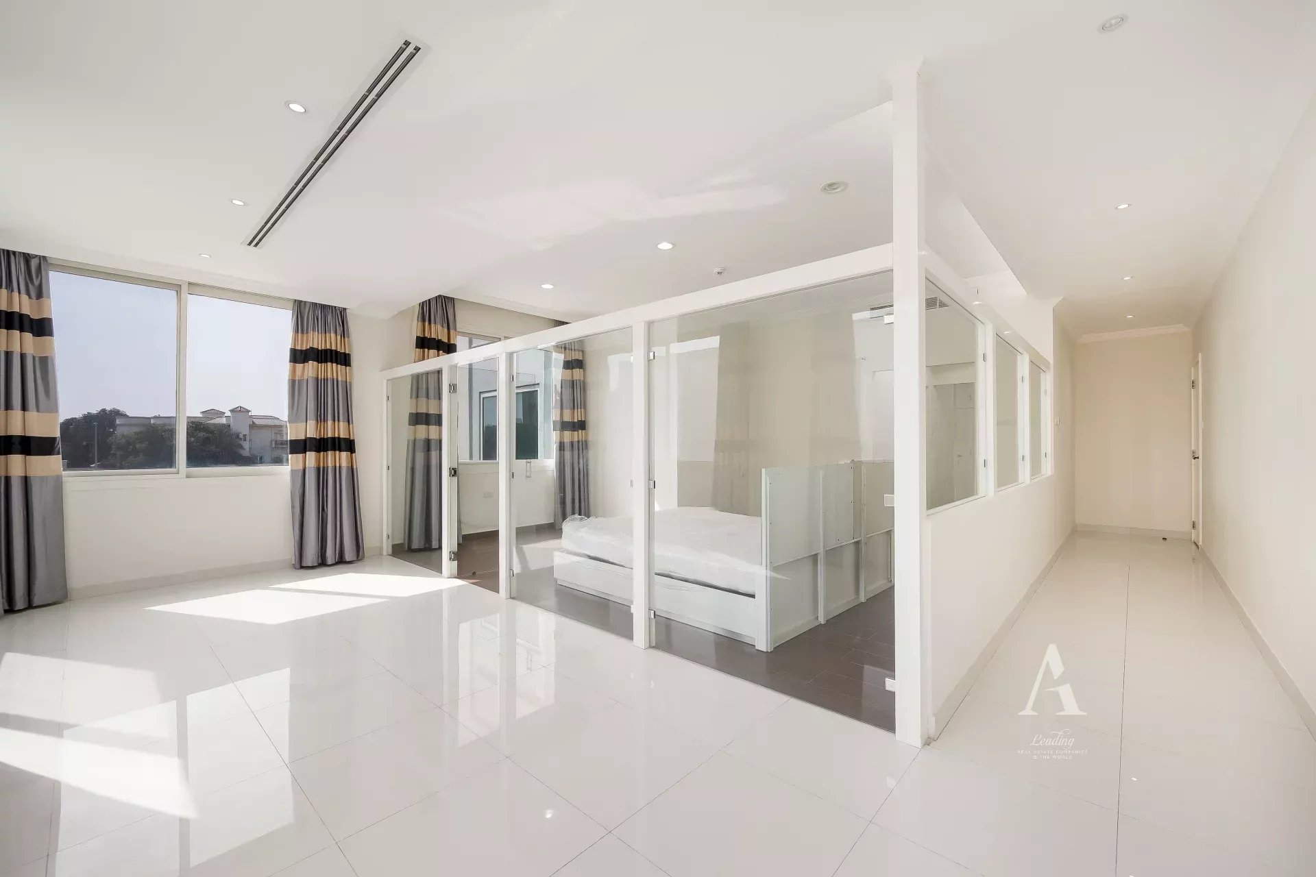 The villa is finished with premium marble flooring, adding to its timeless appeal, and includes a closed kitchen with ample storage and workspace. Outdoors, a private garden creates a serene environment for relaxation or entertaining. Ample parking is available with interior garage spaces and exterior shaded parking.