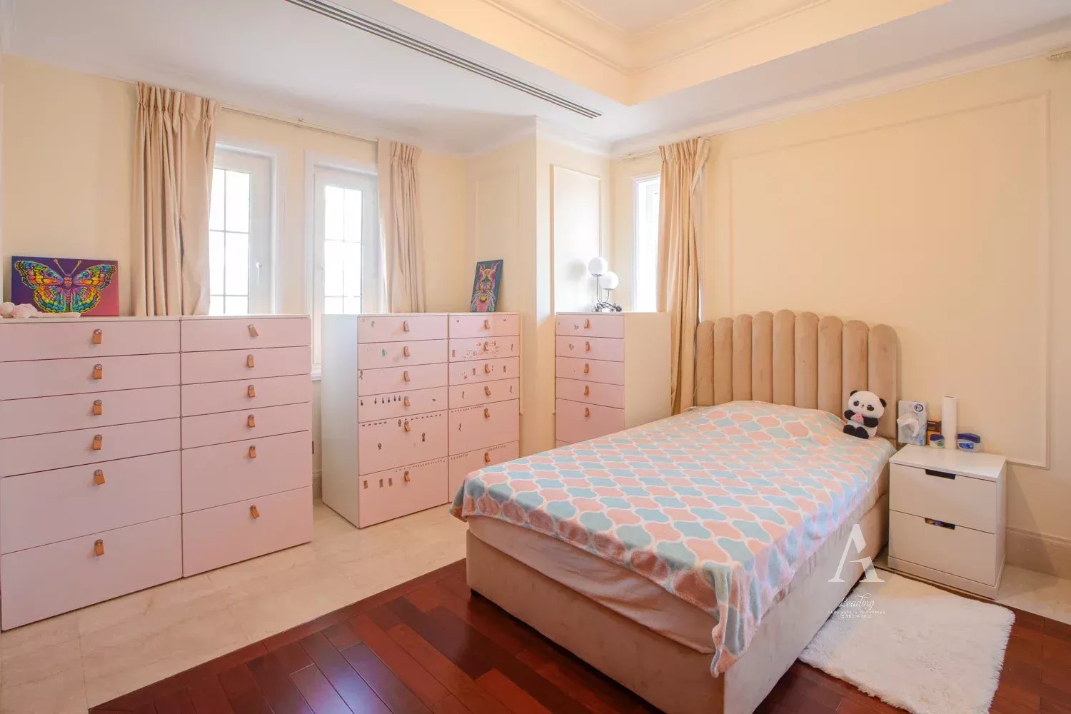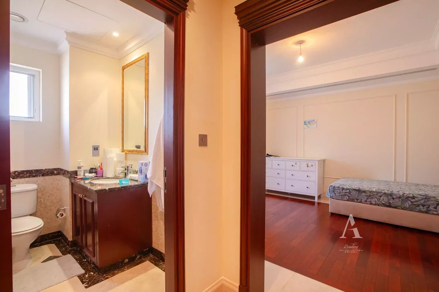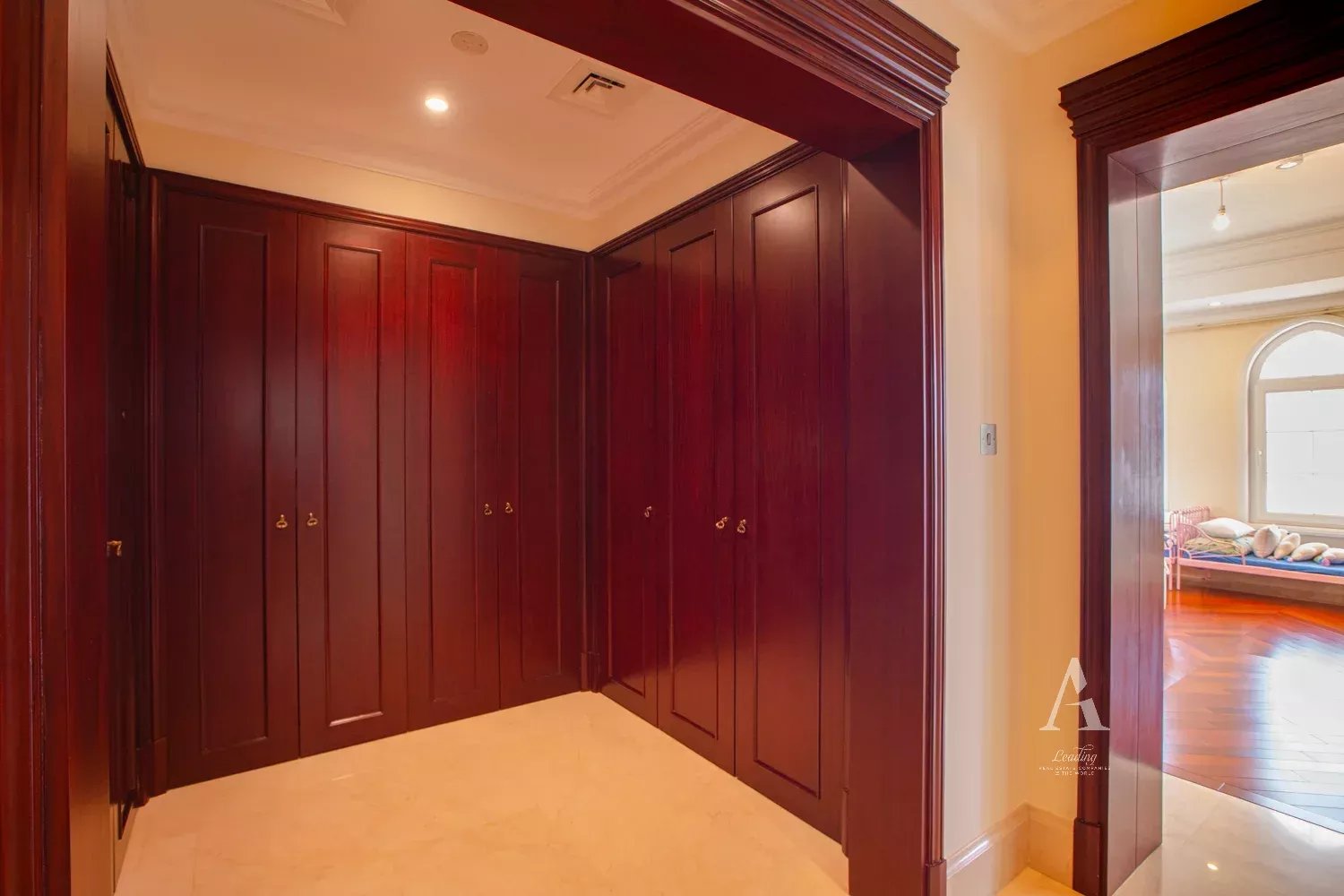 Upstairs, you’ll find five en-suite bedrooms, including a luxurious master suite with walk-in wardrobes and private views. The villa has been positioned to maximize privacy and tranquility, set deep within the community on a premium internal plot.
