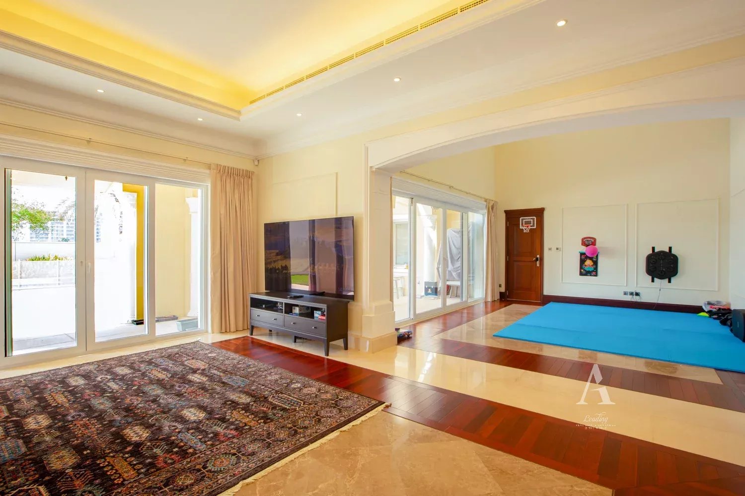 -Multiple living and reception areas