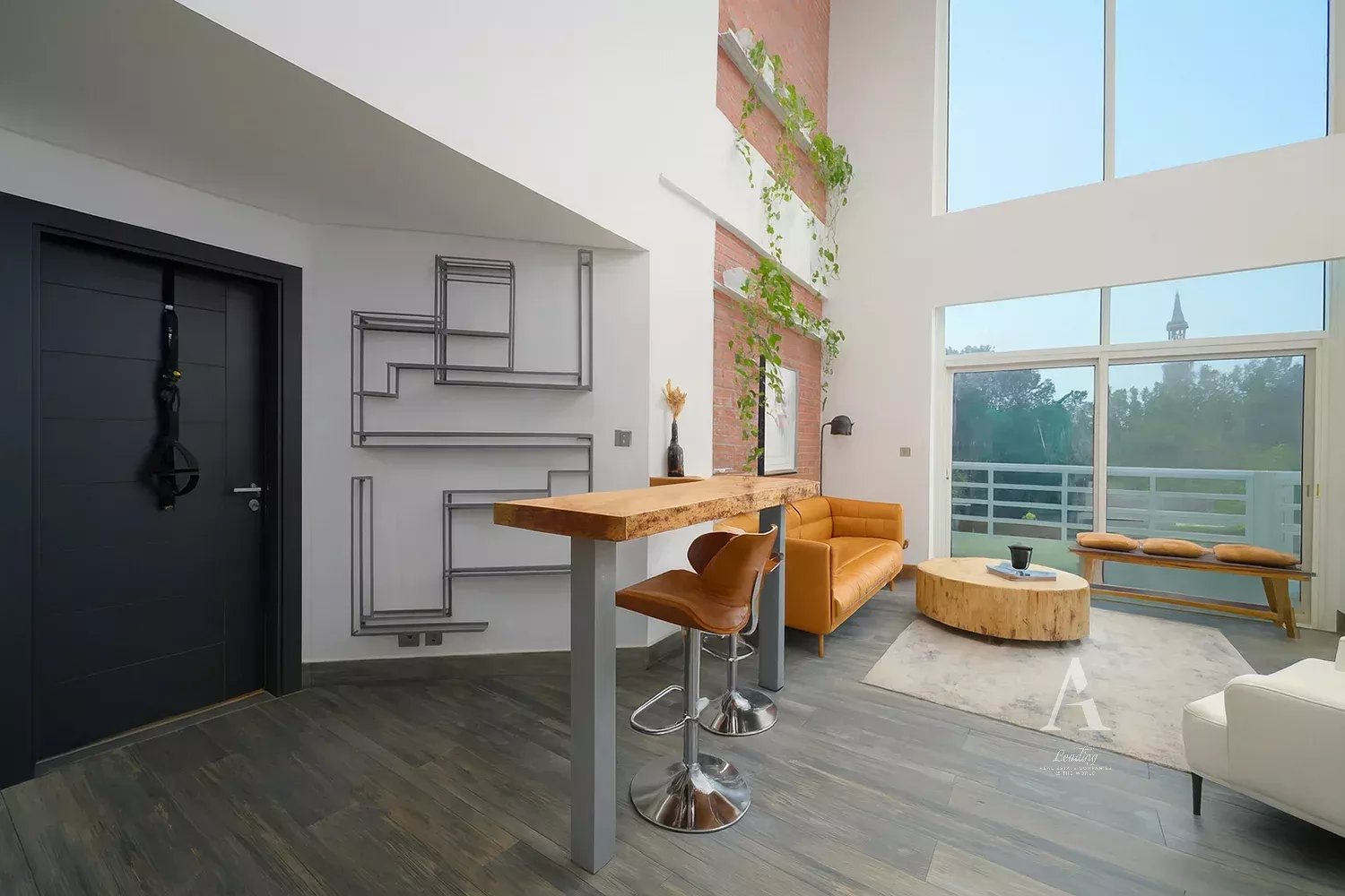 - Living/dining area with large floor-to-ceiling windows