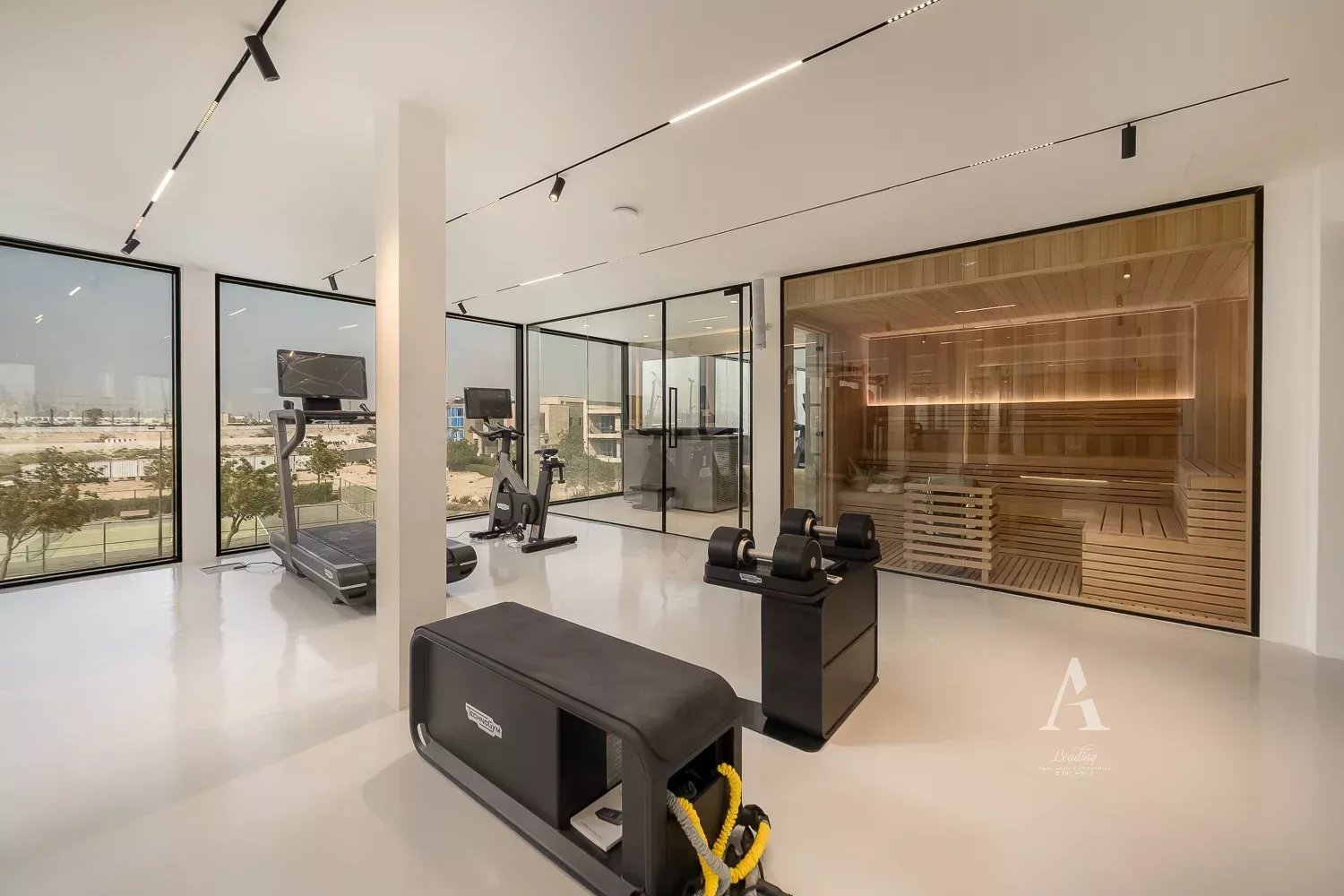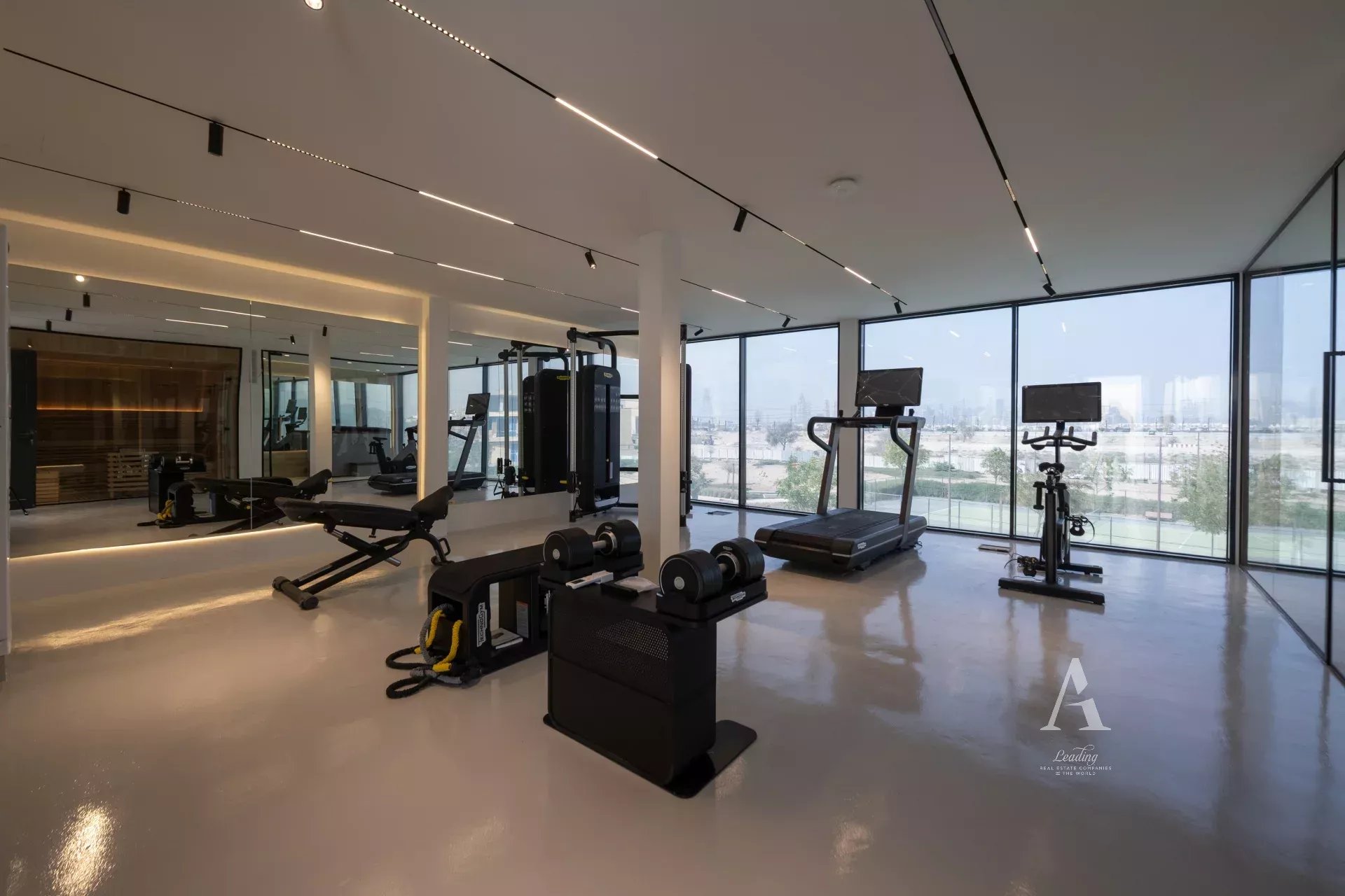 • Gym – fully equipped with Technogym equipment and AI glass windows for complete privacy