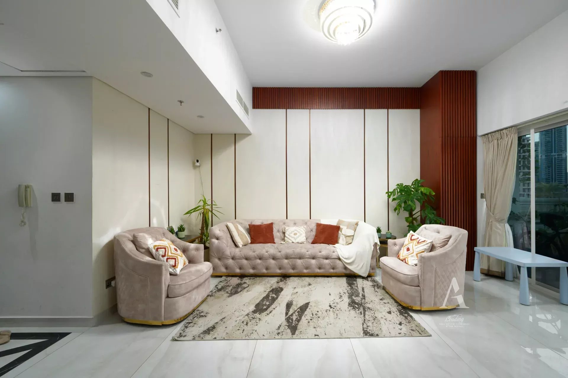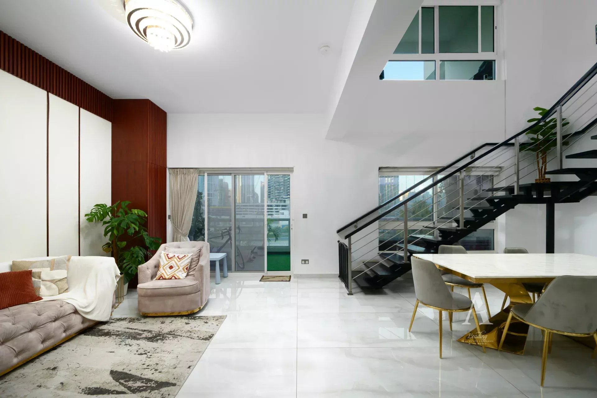 - Living/dining area with large floor-to-ceiling windows
