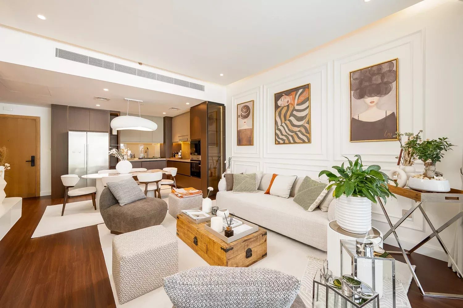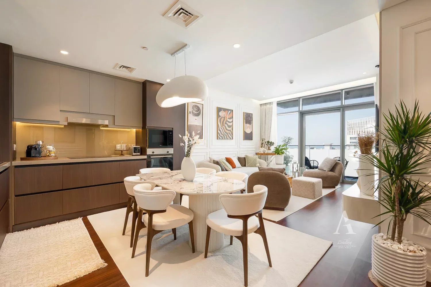 The open-plan living and dining area extends onto a generous balcony an ideal setting for sunset unwinding.