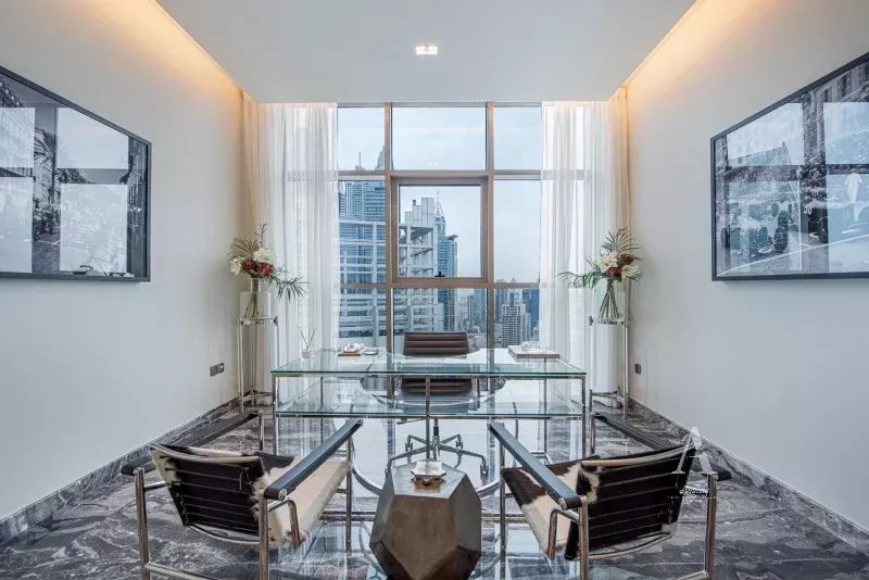 This stunning residence features three generously sized bedrooms, plus a dedicated office, making it ideal for families, professionals, or those seeking a sophisticated work-from-home lifestyle. Thoughtfully designed across two levels, the penthouse combines elegant interiors with seamless functionality.