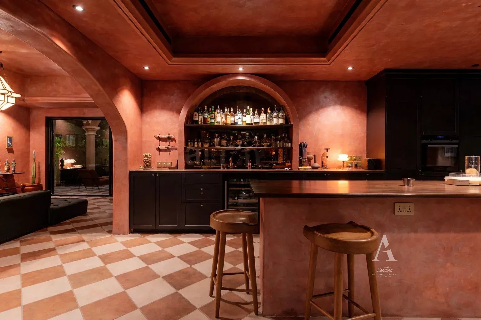 Set on a generous 9,696 sq. ft. plot, the villa backs directly onto the park and has been transformed with an Andalusian-inspired aesthetic, blending Spanish and Arabic architectural influences, sun-washed tones, bespoke finishes, and refined detailing throughout.
